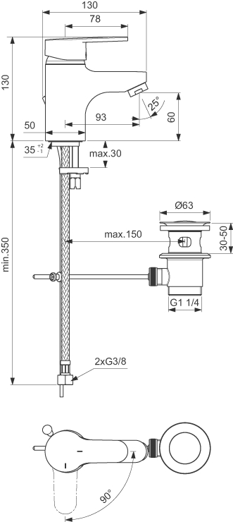 B961079aa levier mitigeur cart 40mm c3. Flexibles en inox tressés longueur 350 mm montés et testés en usine. Bec profilé orientable avec aérateur intégré.
